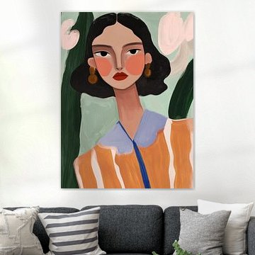 Modernes Porträt "Die Dame mit den Ohrringen" Carla Van Iersel