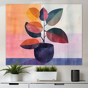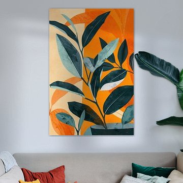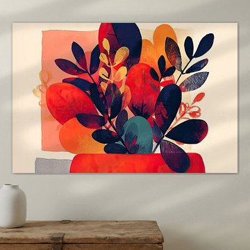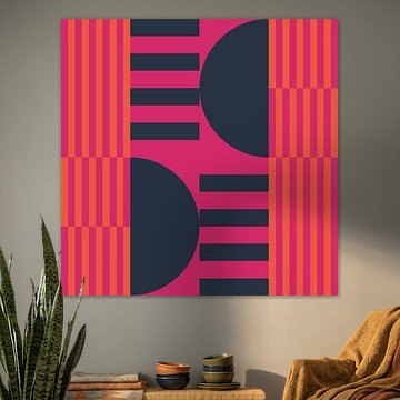 Abstrakte geometrische Kunst im Retrostil in Orange, Magenta und Taupe Dina Dankers