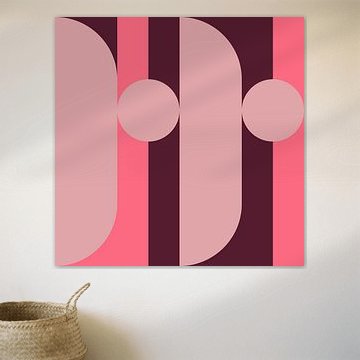 Abstrakte geometrische Kunst im Retrostil in Rosa und warmem Braun. Dina Dankers