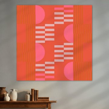 Abstrakte geometrische Kunst im Retrostil in Orange, Rosa, Weiß. Dina Dankers