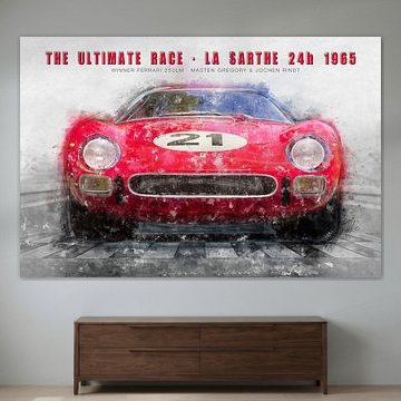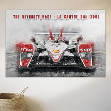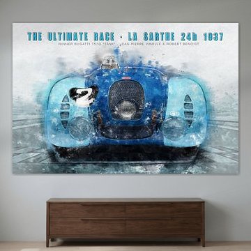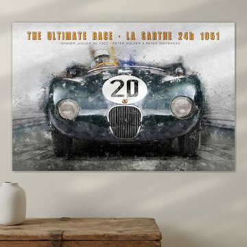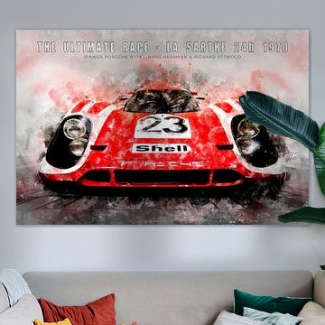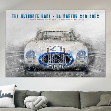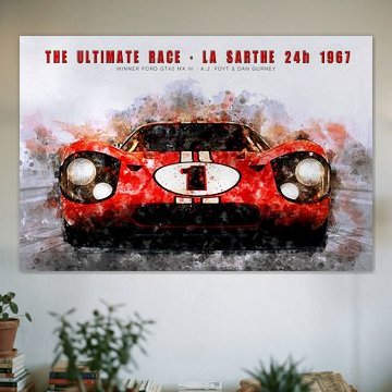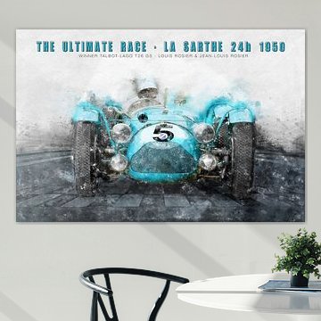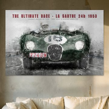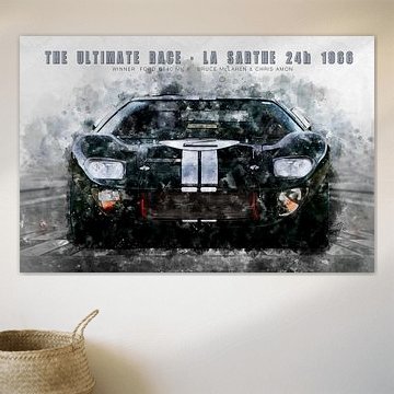 Aquarellgemälde aus einer Serie von Rennwagen, die das ultimative Rennen an der Sarthe, die legendären 24 Stunden von Le Mans, gewonnen haben.