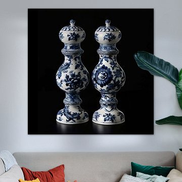 In dit album krijgt een alledaags object een bijna museale status. Het blauw-witte porselein doet denken aan klassiek Delfts aardewerk, maar de diepe zwarte achtergrond en de strakke belichting maken het eigentijds en minimalistisch. Van dichtbij ontdek je fijne florale patronen en een glanzende keramische huid; van een afstand zie je vooral vorm, balans en stilte. Samen vormen de werken een coherente collectie die moeiteloos past in moderne interieurs: Japandi, Scandinavisch, minimalistisch of juist eclectisch als statement. Het contrast tussen het donkere vlak en het kobaltblauw zorgt voor een luxe, kalme uitstraling zonder druk te worden. Hang één werk als blikvanger, of combineer meerdere stukken als een serene “gallery wall” die blijft boeien—steeds opnieuw, bij elk ander licht en elke nieuwe blik.