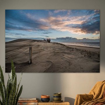 Panoramablick auf den Sonnenuntergang am holländischen Strand