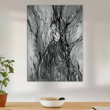 Potlood , houtskool, acryl tekeningen en schilderijen en foto's in zwart -wit een spannend medium.
