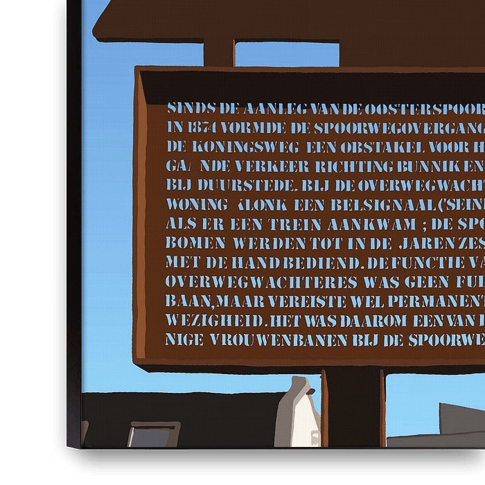 Das digitale Kunstwerk "Eastern Railway" ist ein faszinierendes Stillleben, das ein Zusammenspiel aus industrieller Symbolik und subtiler Einfachheit zeigt. Im Zentrum des Bildes steht ein großes Vorfahrtsschild aus Metall, das von einer stilisierten Lokomotive gekrönt wird, aus der eine anmutige Dampfwolke aufsteigt. Dieser Dampf…