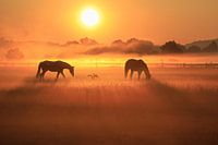 Bestelle dieses Landschafts-Wandbild 2 Pferde und 1 Graureiher von Bernhard Kaiser als Kunstdruck auf Leinwand, Alu-Dibond, als Poster, Fototapete oder Acrylglasbild.