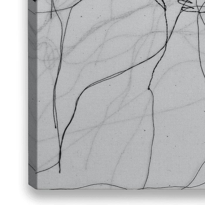 die losen Fäden verleihen dem Bild eine unvollendete Wirkung und Bewegung.