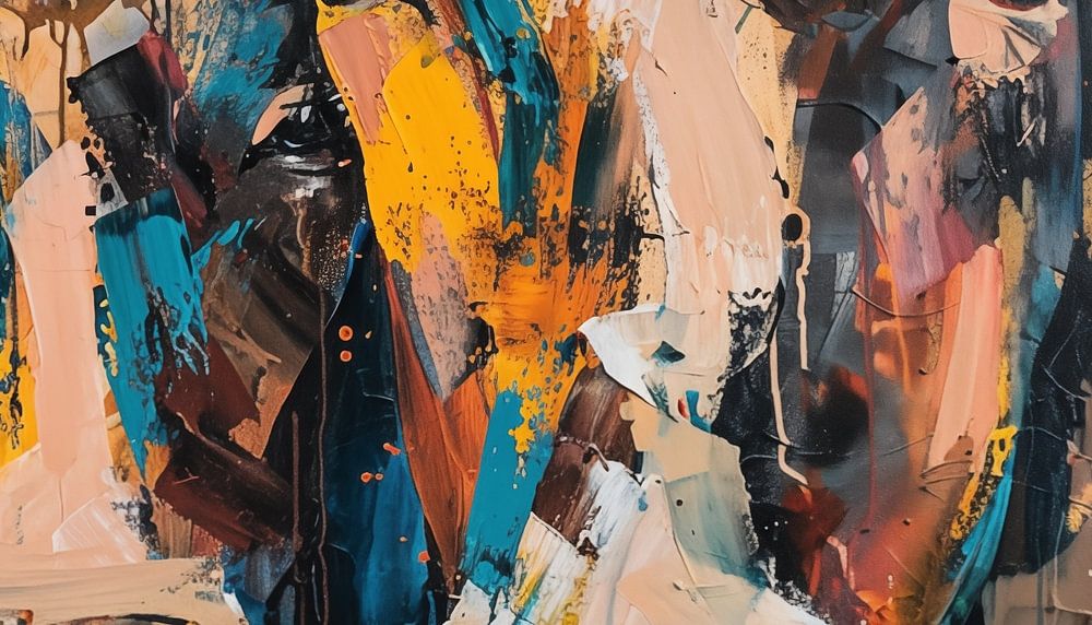 Die auffälligen und harmonischen Farbtöne - von sanften Erdtönen bis hin zu frischen Akzenten in Blau, Gelb und Beige - verleihen dem Gemälde eine lebendige und warme Ausstrahlung. Diese Farben wurden sorgfältig ausgewählt, um sich gegenseitig zu verstärken und der Komposition eine energiegeladene und dennoch ausgewogene Wirkung zu verleihen. Das einzigartige und kreative Design schafft ein Kunstwerk, das sowohl einladend als auch stilvoll ist.