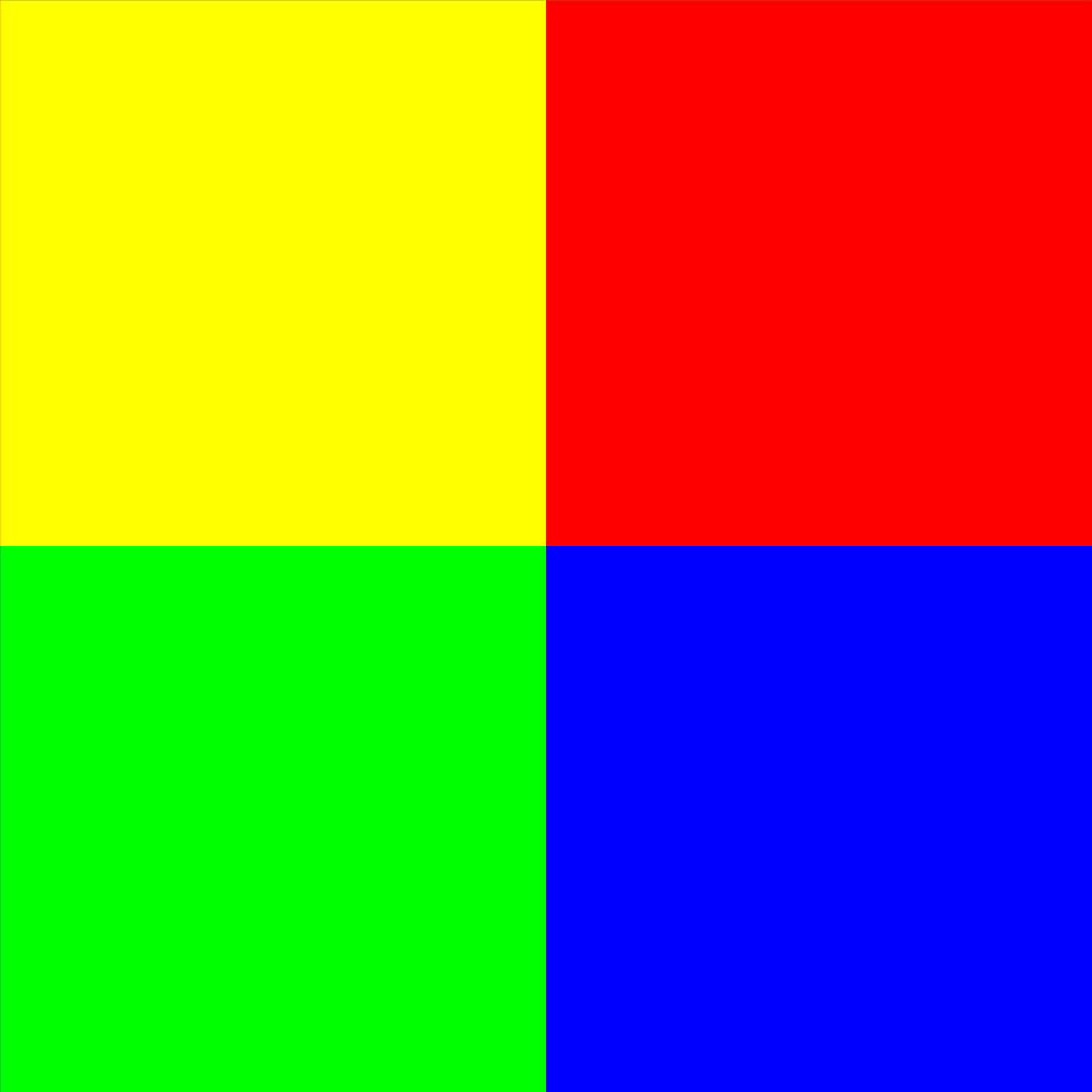 Spezielle Anordnung mit Rot, Grün, Blau und Gelb.