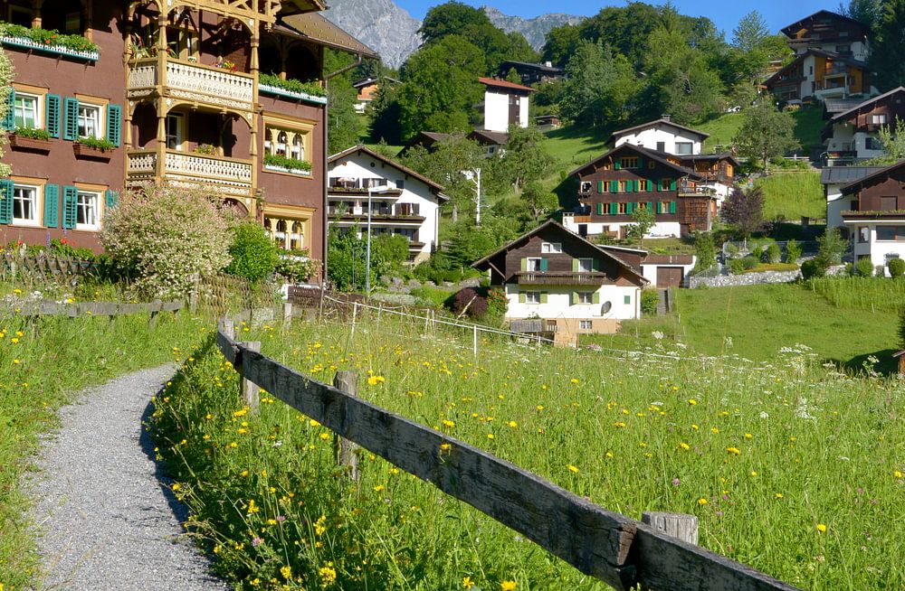 A beautiful wooden house in Tschagguns Montafon Austria on a sunny morning
