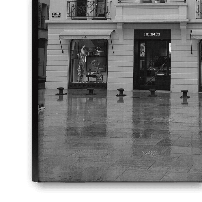 "A view on Hermes Saint-Tropez" von Fotograf Tom Vandenhende (Saint-Tropez, Côte d ' Azur, Frankreich) ist ein Bild des Hermes verkauft als Dekoration im dressings oder Badezimmer. Ein souvenir von einem schönen Urlaub in der Französisch Riviera...