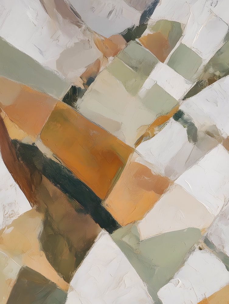 Bringen Sie einen raffinierten Hauch von Natur in Ihr Zuhause mit dieser beeindruckenden abstrakten Landschaft. Dieses originelle Kunstwerk interpretiert eine Berglandschaft durch eine zeitgenössische geometrische Linse neu und verbindet natürliche Inspiration mit modernem Designgefühl.