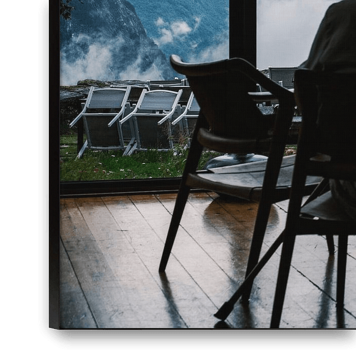 An einem schönen Ort in Norwegen, im Hotel Stalheim, saßen diese beiden älteren Herren in der Hotellobby. Im Hintergrund sind die norwegischen Fjorde zu sehen. Mit ein wenig Wolkendecke.