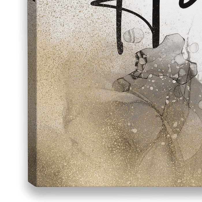 Alkoholtinte mit goldenen Akzenten und Typografie erschaffen ein dekoratives abstraktes Werk. Die Leichtigkeit des Tintenmusters umfließt den Text. Ein Design das zum Lebensmotto passt. CHOOSE HAPPY. Wähle doch einfach glücklich zu sein.
