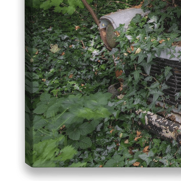 Ein altes Auto, eingewachsen im Wald.