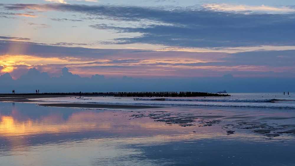 Sonnenuntergang an einem Abend am Strand von Nieuwvliet zwischen Breskens und Cadzand