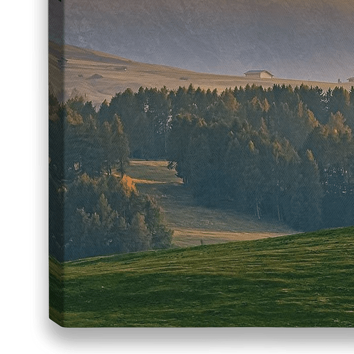 Abendlicht und Wolken ziehen über die Seiser Alm, ein Hochplateau der Dolomiten und die größte Hochalm Europas. Die Stadt liegt in der italienischen Provinz Südtirol in den Dolomiten.