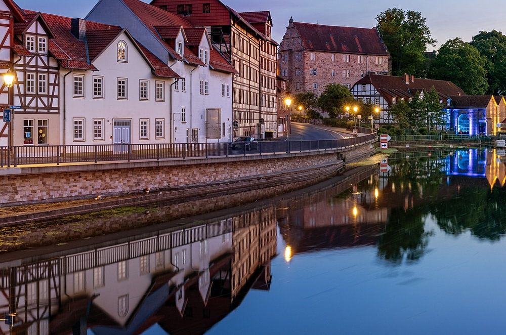 Die Stadt Eschwege liegt im deutschen Bundesland Hessen am Ufer des Flusses Werra. Die Stadt ist malerisch und hat schöne Fachwerkhäuser.