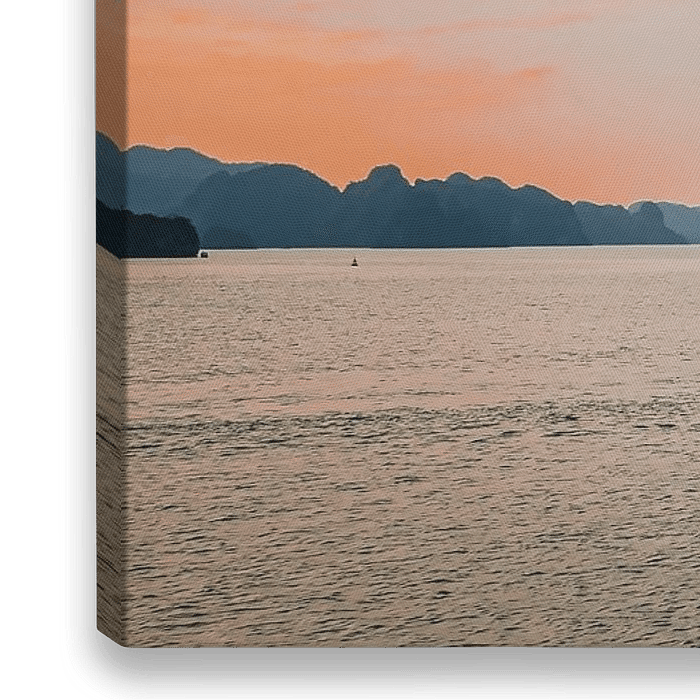 Bestelle dieses Landschafts-Wandbild Abend in Ha Long Bay, Vietnam von Rietje Bulthuis als Reproduktion auf Leinwand, Alu-Dibond, als Poster, Fototapete oder Acrylglasbild.