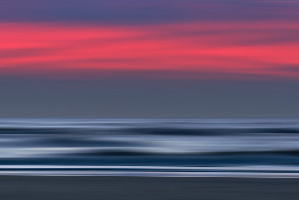Farben am Nordseestrand zur blauen Stunde, künstlerische Verfremdung mit einem Verwischeffekt für eine dekorative abstrakte Bildwirkung, kontrastreiches Bild