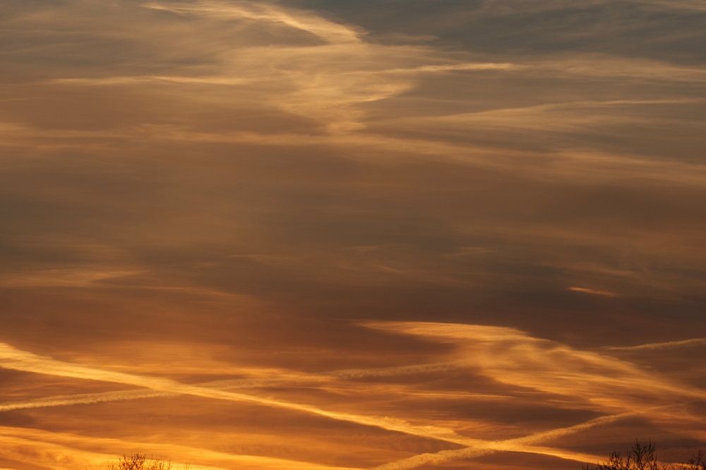 Diese Färbung des Himmels mit dem Schauspiel der Wolken und den Kondensstreifen mehrerer Flugzeuge hat mich sehr in ihren Bann gezogen.