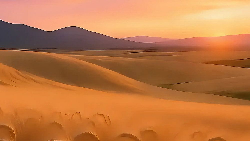 Der Himmel über dem Feld ist ein Schauspiel aus Farben: Zunächst ein tiefes Indigo, das in ein Purpur übergeht, dann in warmes Orange und schließlich in zartes Rosé, wo die letzten Sonnenstrahlen die Wolken von unten beleuchten. Die Sonne selbst senkt sich langsam und taucht den Weizen in flüssiges Gold; lange Schatten ziehen sich hin und verleihen der Landschaft eine fast greifbare Ruhe. Lichtreflexe tanzen auf den feinen Härchen der Ähren und lassen das Feld wie mit tausend kleinen Flammen glühen.