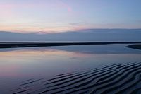 Am Ende des Sonnenuntergangs in Zeeland herrscht am Strand von Burgh Haamstede eine ruhige Atmosphäre.