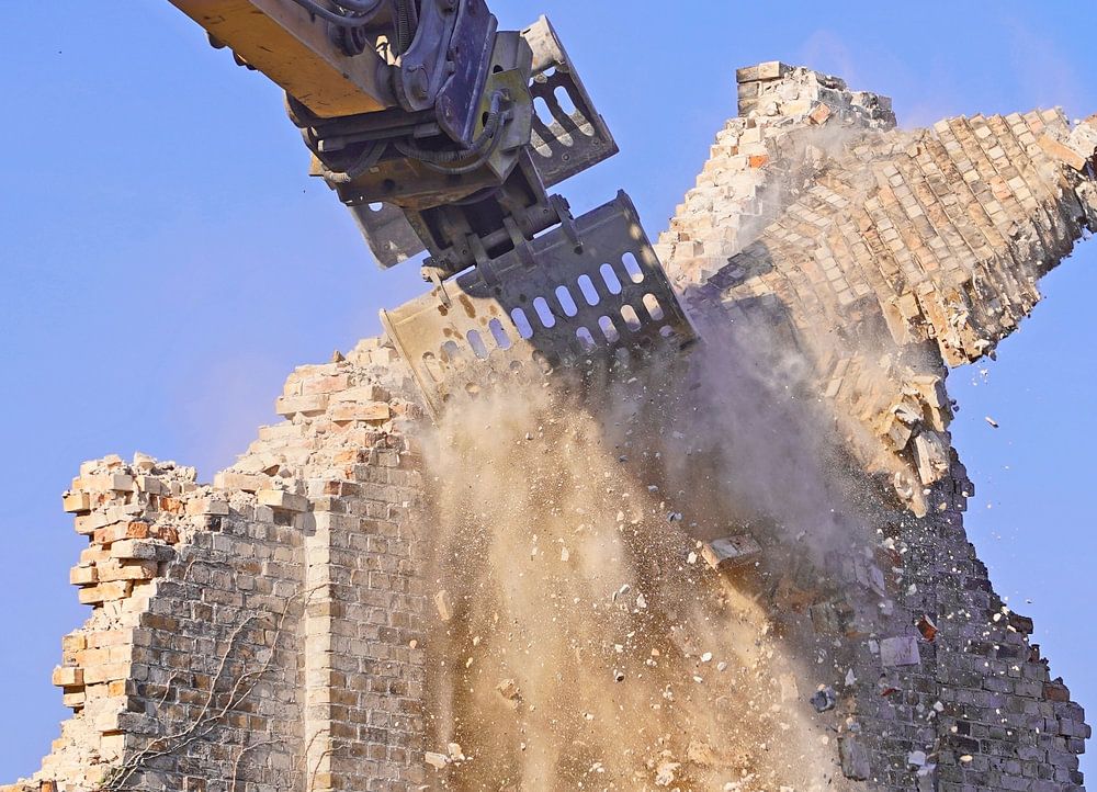 Abriss des Speicher gebäudes des Komplexes Böllberger Mühle in Halle