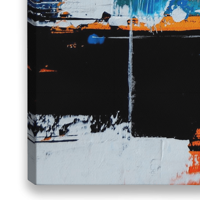 abstraktes, modernes und farbintensives Bild in Acryl, Spachtel-Technik, orange, türkis, schwarz und weiß, dekoratives Wandbild für den Wohnbereich, Büros oder Praxis, fabenfroh, leuchtend, zeitgenössische Malerei, abstrakte Kunst, kontrastreich,moderne Kunst, expressiv