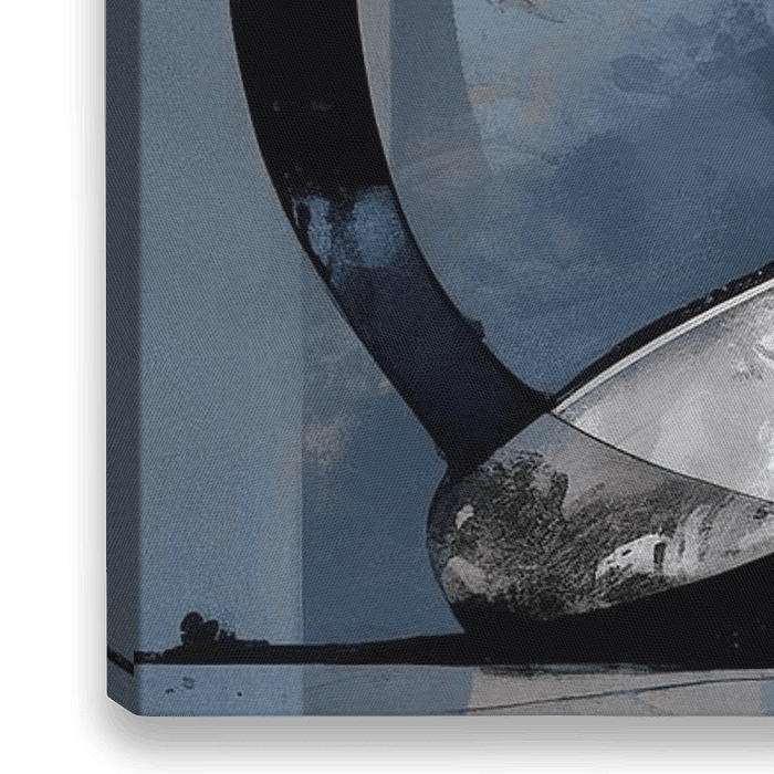 Abstrakt - Dieses abstrakte Gemälde zeigt verschiedene fließende Formen mit dynamischen Blau- und Grautönen, die mit schwarzen und weißen Akzenten zu einem modernen industriellen Stil verschmelzen.