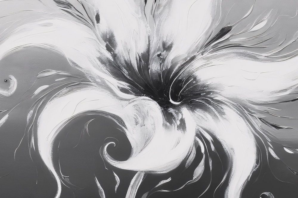 Diese künstlerische Interpretation einer Blume kombiniert subtile Nuancen von Schwarz, Weiß und Grau mit fließenden Linien und dynamischen Formen, die Eleganz und Bewegung ausstrahlen. Perfekt für moderne Innenräume, bringt dieses Stück ein Gefühl von Ruhe und Raffinesse. Dieses zeitlose Design ist ideal für Ihr Zuhause oder Ihr Büro und bietet einen minimalistischen Look, der in jeden Raum passt.