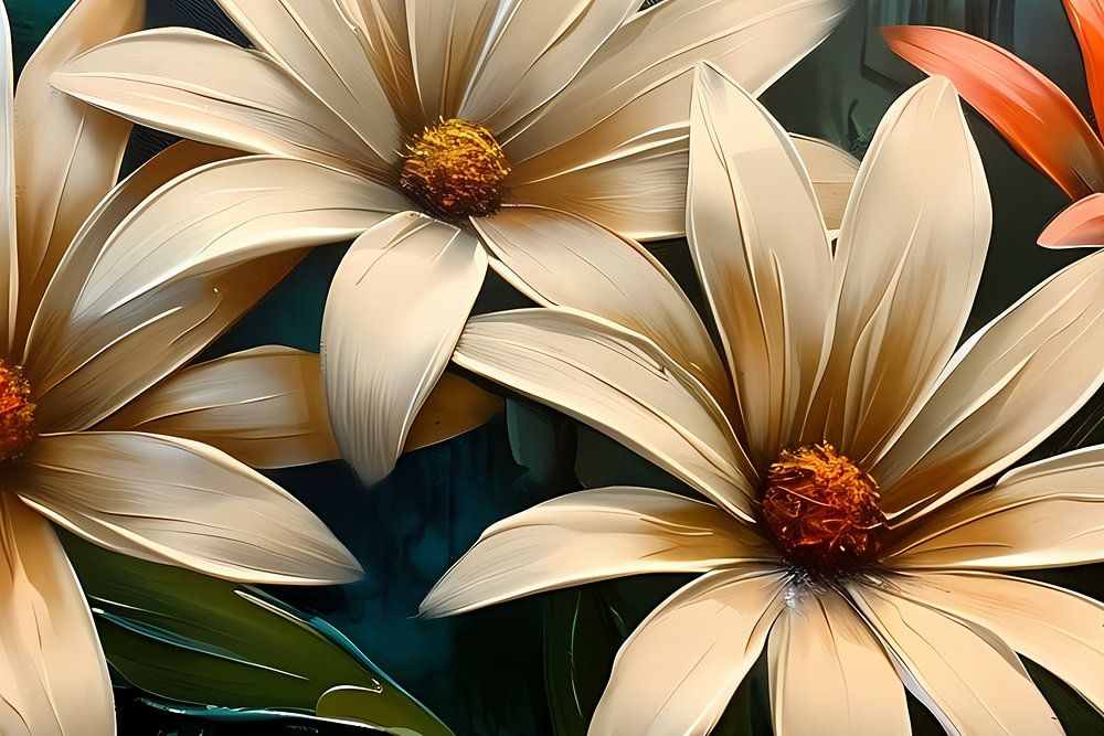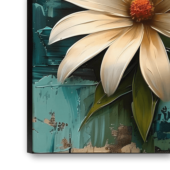 Diese wunderschöne abstrakte Blumenkunst bringt einen Hauch von Natur und Lebendigkeit in jeden Raum. Mit einer harmonischen Mischung aus Grün, Weiß, Orange, Blau und Braun schafft dieses Design eine ruhige und einladende Atmosphäre. Perfekt für das Schlafzimmer oder das Büro ist dieses Kunstwerk ein Blickfang, der ein Gefühl von Ruhe und Inspiration vermittelt. Die detaillierten Blütenblätter und Blätter verleihen dem abstrakten Kunstwerk einen realistischen Touch, der es sowohl modern als auch zeitlos erscheinen lässt. Ideal für Liebhaber moderner Kunst, die einen Hauch von Natur in ihrem Interieur lieben.