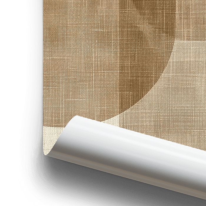 Abstraktes Gemälde in Erdtönen | Geflochtene Erdtöne - Dieses abstrakte Gemälde zeichnet sich durch die subtile Harmonie von Erdtönen und geometrischen Formen aus, die nahtlos ineinander übergehen. Im Mittelpunkt dieses Kunstwerks stehen sich überschneidende Formen: ein großer Kreis, der teilweise von einem vertikalen Rechteck und einer halbkreisförmigen Form überdeckt wird. Die Formen sind in verschiedenen Brauntönen dargestellt, die von einem hellen Zimtton bis zu einem tiefen, satten Kaffeebraun reichen. Die Textur des Gemäldes erinnert an einen subtil gewebten Stoff und verleiht dem visuellen Erlebnis eine zusätzliche Dimension. Der minimalistische Ansatz in Kombination mit einer monochromen Farbpalette macht dieses abstrakte Gemälde sowohl beruhigend als auch faszinierend.