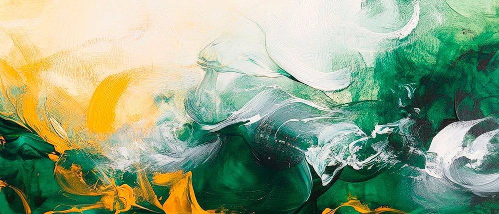 Die sanften Grüntöne, gepaart mit lebhaften Akzenten in Gelb, zaubern eine harmonische Atmosphäre, die an eine frische, unberührte Natur erinnert. Die fließenden Übergänge und dynamischen Strukturen laden zur Ruhe und Inspiration ein. Perfekt für das Wohnzimmer, wo sie Gespräche anregen und eine einladende Stimmung schaffen kann.