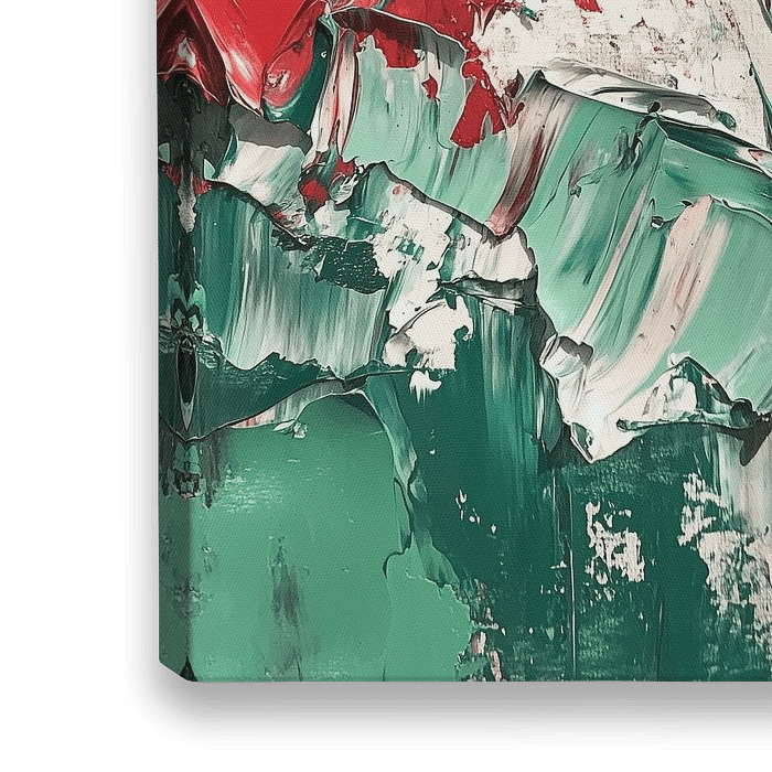 Bestelle dieses abstrakte Wandbild Abstrakte Farbschichten in Rot und Grün von artefacti als Reproduktion auf Leinwand, Alu-Dibond, als Poster, Fototapete oder Acrylglasbild.