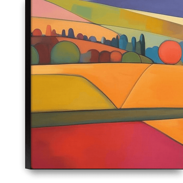 Ihre gewählte Kunst auf Leinwand, gespannt in einem Aluminiumrahmen. Schnell und einfach austauschbar für eine frische Ausstrahlung und ganz nach Ihren Wünschen.