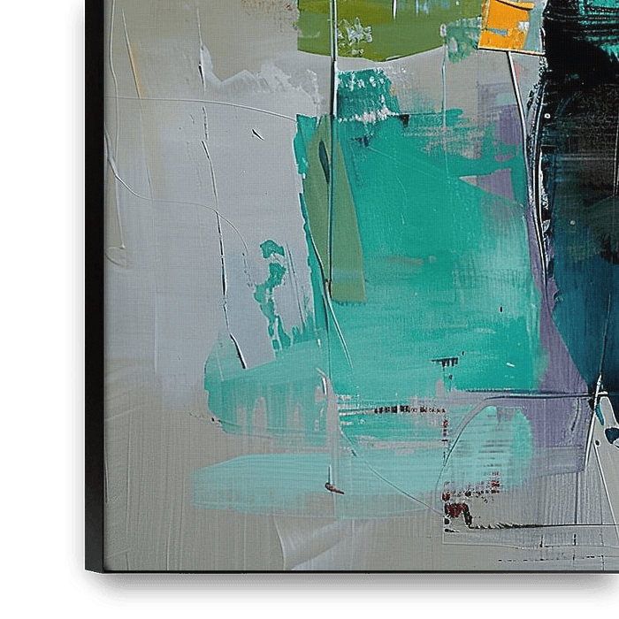 Abstrakte Kunst Bewegung | Bewegte Frau - Dieses abstrakte Gemälde zeigt eine Figur, die in Bewegung zu sein scheint. Lebendige Farben wie Grün, Lila und Gelb schaffen eine dynamische und moderne Atmosphäre.
