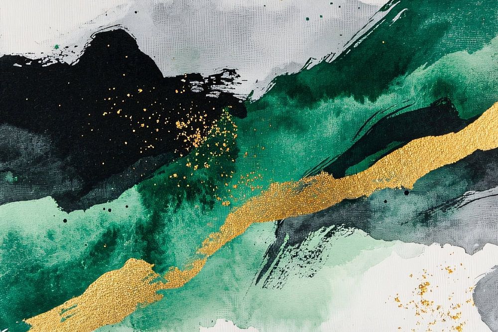 Dieser abstrakte Kunstdruck kombiniert dynamische Pinselstriche mit einer raffinierten Farbbalance. Die Verwendung von tiefen Grüntönen, reichen Goldakzenten und kontrastierendem Schwarz schafft ein lebendiges und modernes Kunstwerk. Die subtilen Texturen und Bewegungen im Design vermitteln ein Gefühl von Energie und Eleganz und machen es zu einem perfekten Blickfang in jedem Interieur. Hängen Sie es in einem Wohnzimmer, Büro oder Flur auf, um sofort eine raffinierte Atmosphäre zu schaffen. Dieses Design ist ideal für Liebhaber abstrakter Kunst, die eine Harmonie zwischen Lebendigkeit und Raffinesse lieben.