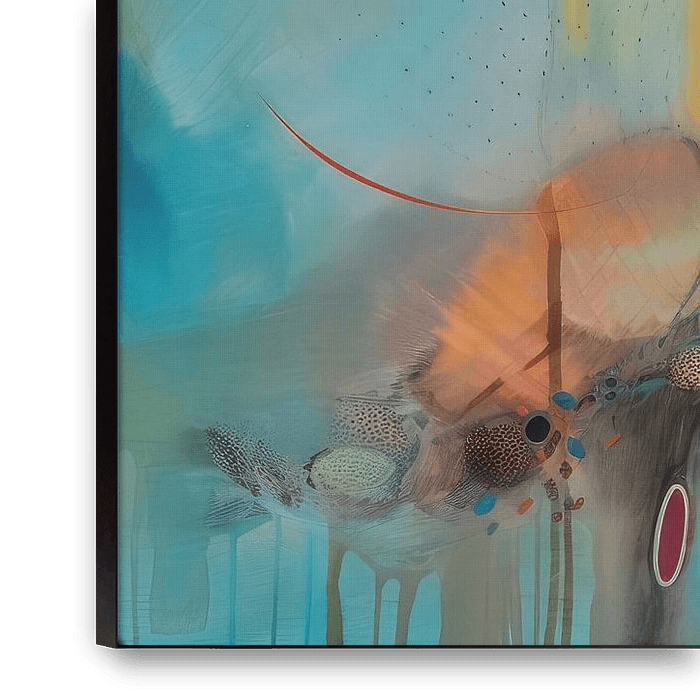 Ihre gewählte Kunst auf Leinwand, gespannt in einem Aluminiumrahmen. Schnell und einfach austauschbar für eine frische Ausstrahlung und ganz nach Ihren Wünschen.