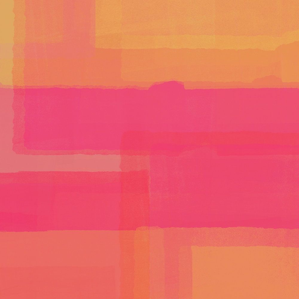 Über "Abstrakte Landschaft. Farbblöcke in Neon-Pink, Gelb, Koralle."