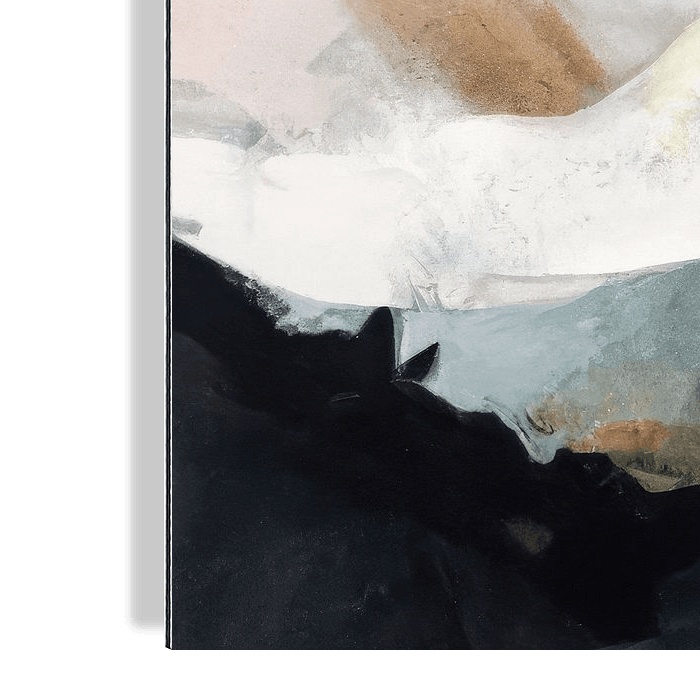 Abstrakte Landschaft in Erdtönen. Verschiedene Schattierungen von Weiß, Beige, Schwarz, Blau und Grün verbinden sich zu einer abstrakten Berglandschaft.