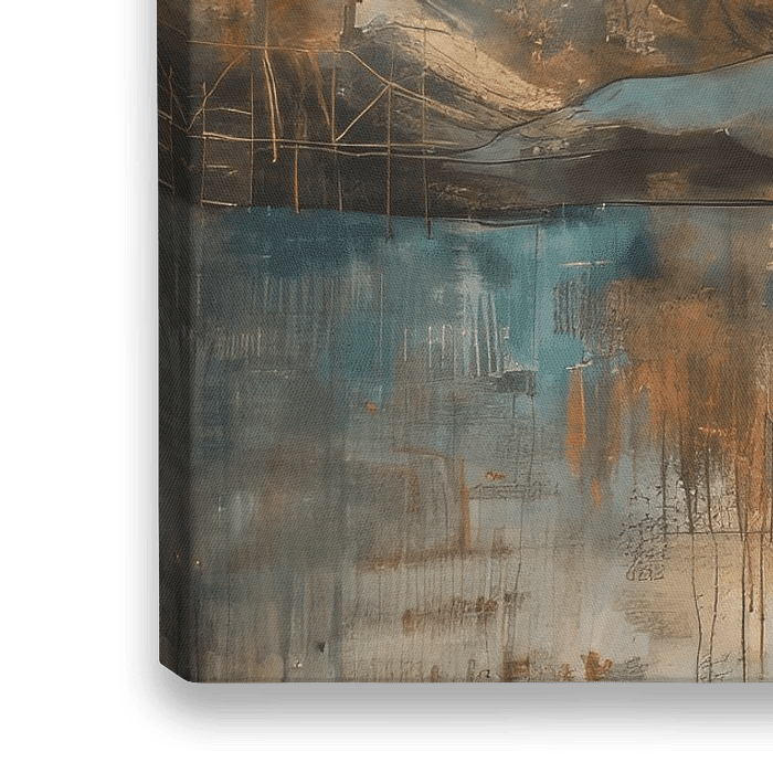 Abstrakte Landschaft in Erdtönen. Wählen Sie Ihre eigene Größe und Material für dieses Werk und machen Sie es zu einem besonderen Blickfang für Ihr Interieur.
