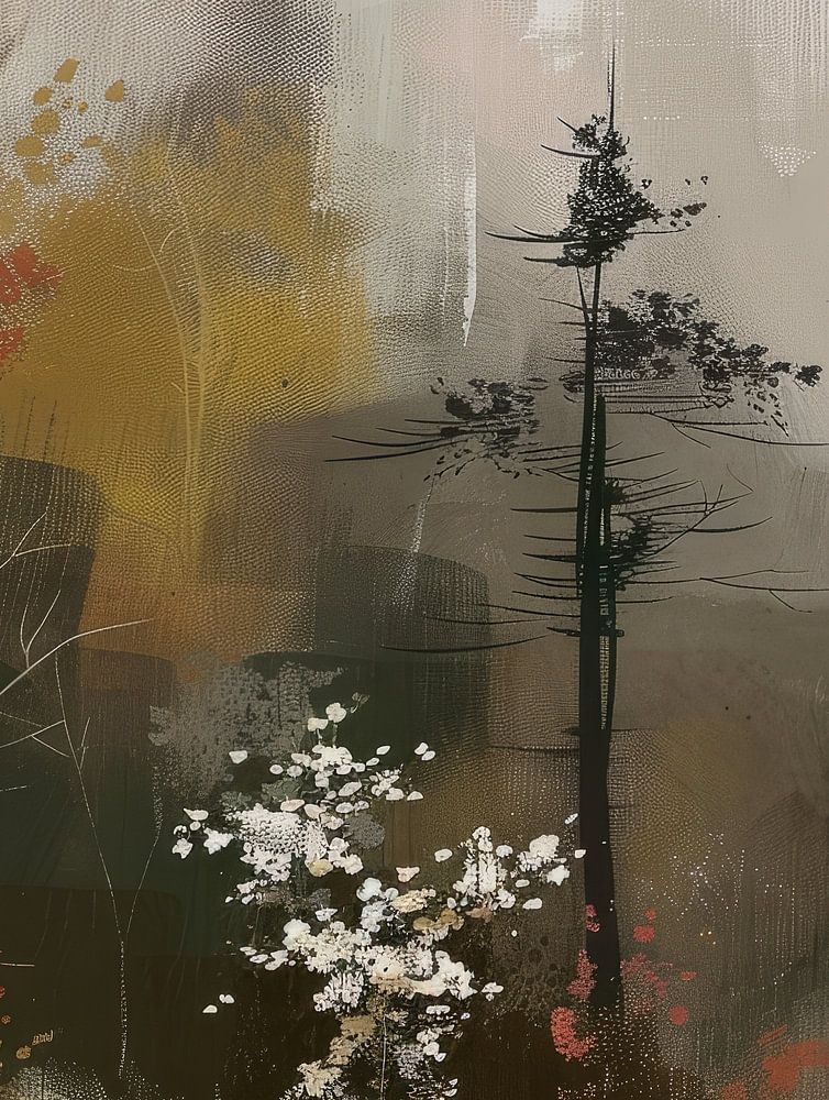 Abstrakte Landschaft in neutralen Tönen, japanischer Stil. Dieses Werk passt auch zum Lebensstil Neuland, Wabi-Sabi und Zen. Minimalismus in ruhigen Farben.