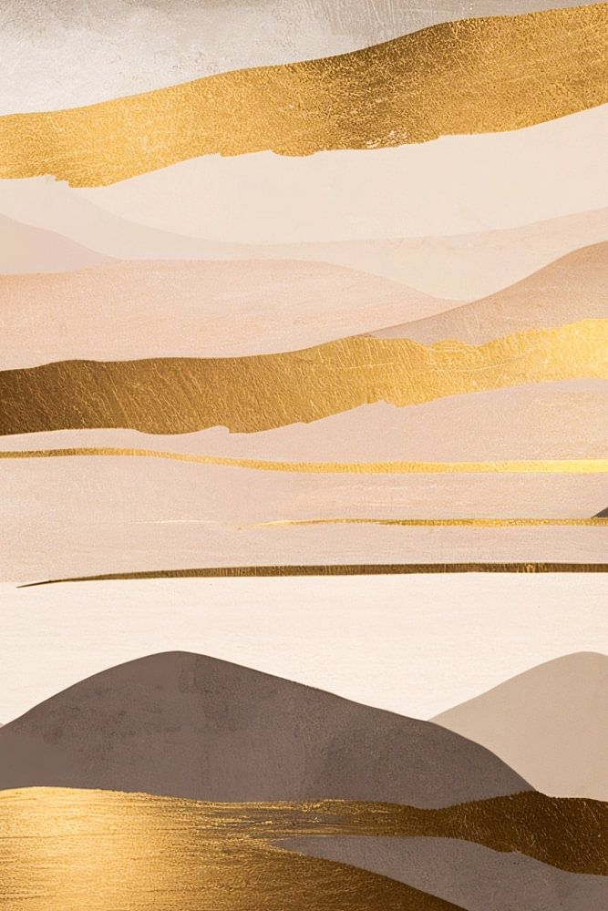 Dieses wunderschöne Kunstwerk bringt eine anspruchsvolle und moderne Ästhetik in jedes Interieur. Die geschichteten Linien und die subtilen Farbkombinationen aus Gold, Beige und Schwarz schaffen eine ruhige und harmonische Atmosphäre. Perfekt für Liebhaber minimalistischer und abstrakter Kunst, bietet dieses Design einen zeitlosen Look, der sich sowohl für Wohnräume als auch für Büros eignet. Die goldenen Akzente verleihen einen Hauch von Luxus, während die Erdtöne Ruhe ausstrahlen. Ideal, um eine leere Wand in einen stilvollen Blickpunkt zu verwandeln.