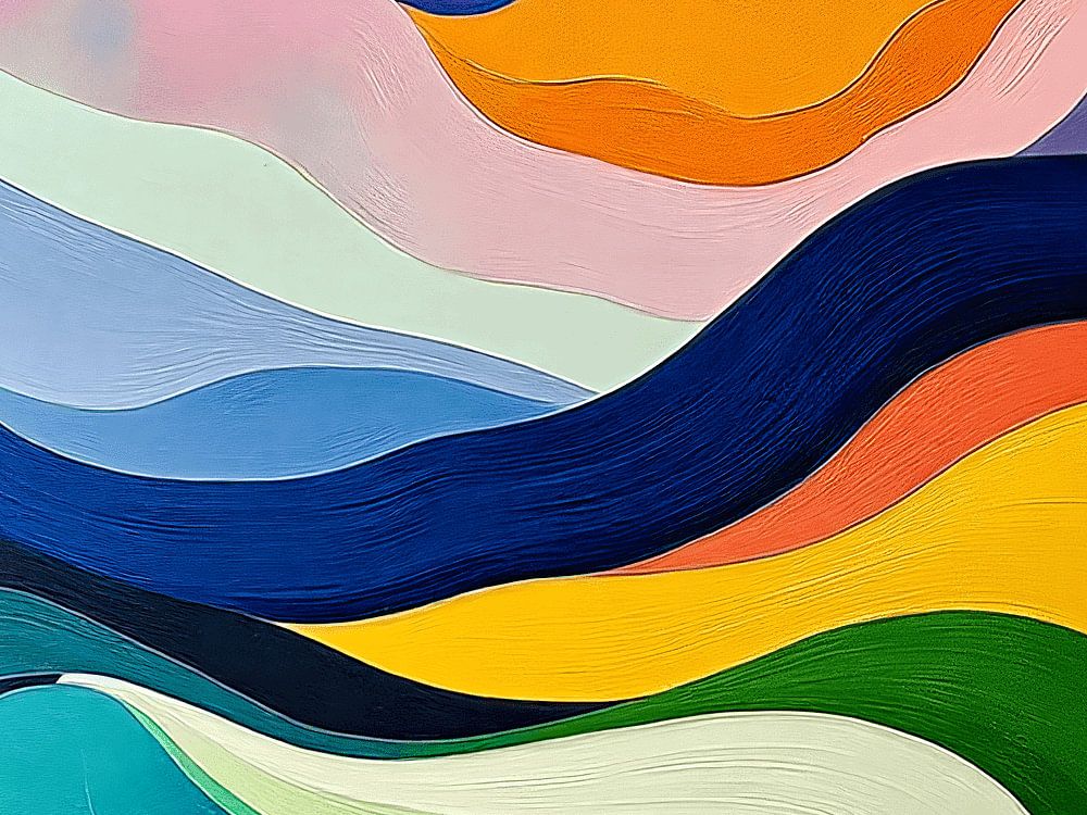 Mein abstraktes Gemälde einer Landschaft mit schönen Farben fängt die Essenz der Natur in einem innovativen, freien Stil ein. Die Landschaft besteht aus fließenden, organischen Formen und einer harmonischen Mischung von Farben, die das Gefühl von Raum und Bewegung hervorrufen. Warme Orange-, Rot- und Gelbtöne verschmelzen mit kühlen Blau- und Grüntönen, die zusammen eine dynamische, fast traumhafte Szene ergeben. Die Formen sind vage und suggestiv und laden zur Interpretation des Bildes ein. Es handelt sich nicht um eine genau definierte Landschaft, sondern eher um ein Gefühl der Natur, eine eingefangene Emotion, die der Betrachter erleben und ausfüllen kann. Das Gemälde strahlt Ruhe, Schönheit und die Kraft der Farben aus und bietet einen Moment der Reflexion und des Staunens.