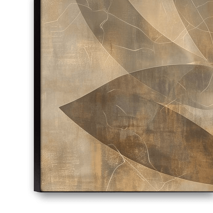 Die Lotusblume, die im Stil eines abstrakten Gemäldes dargestellt ist, zeigt elegante Schlichtheit und Modernität. Wirbelnde Linien und geometrische Formen formen die Blütenblätter, während gedämpfte Farben im Hintergrund die Blume auf ein Podest stellen. Die sanfte Beleuchtung erzeugt subtile Schatten auf den Kurven, wobei ein auffälliges braunes Blütenblatt in der Mitte einen Kontrast zu den helleren Tönen bildet. Dieses Kunstwerk strahlt Schlichtheit und Raffinesse aus und erweckt die Lotusblume auf moderne Weise zum Leben.