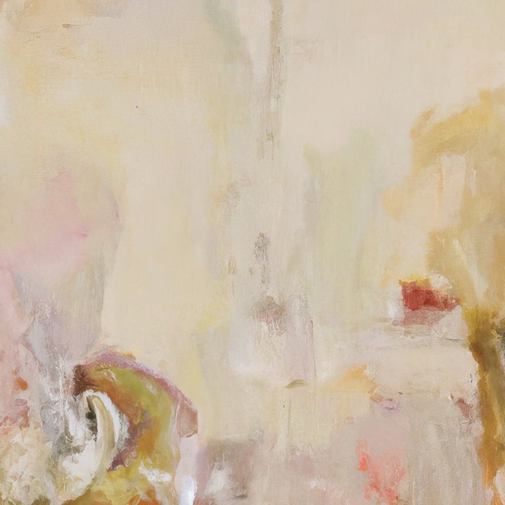 Abstraktes Gemälde in Pastellfarben mit hauptsächlich gelben Tönen, die dem Werk eine frühlingshafte und sonnige Atmosphäre verleihen. An einem abstrakten Werk kann man sich nicht satt sehen!