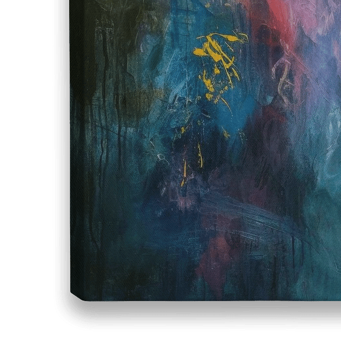 Abstraktes Gemälde mit einer Mischung aus Farben und Formen. Erinnert an einen Sonnenuntergang am Wasser mit einem verträumten Effekt.