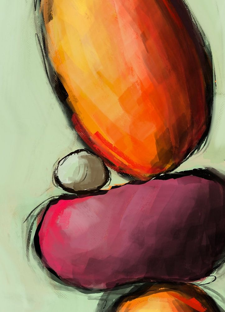 Die Darstellung von Licht in meinen Gemälden ist der wichtigste Teil dieser Arbeit. Ich verbessere das immer wieder und suche nach Farben, die das gut darstellen können. Auch bei diesem abstrakten Werk habe ich das gleiche Licht gesucht wie bei dem "passenden" Bild mit den Glasvasen.