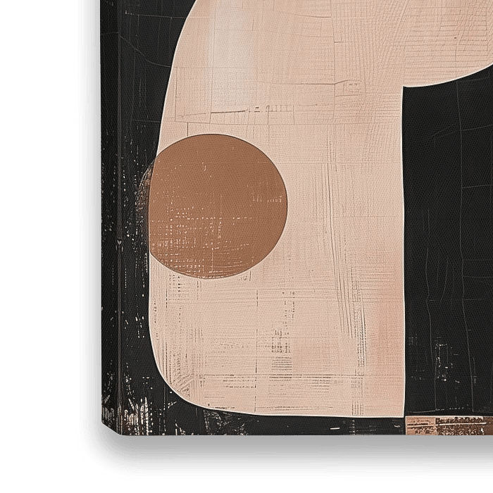 Dieses Kunstwerk spiegelt den Stil der Jahrhundertmitte mit abstrakten Formen zweier sich umarmender Figuren in Erdtönen, Schwarz, zartem Rosa und neutralen Farben wider. Die Komposition enthält einfache Linien und klare Formen, die ein modernes und harmonisches Aussehen schaffen. Das Kunstwerk erweckt ein Gefühl von Verbundenheit und Liebe in einem modernistischen und künstlerischen Kontext zum Leben.